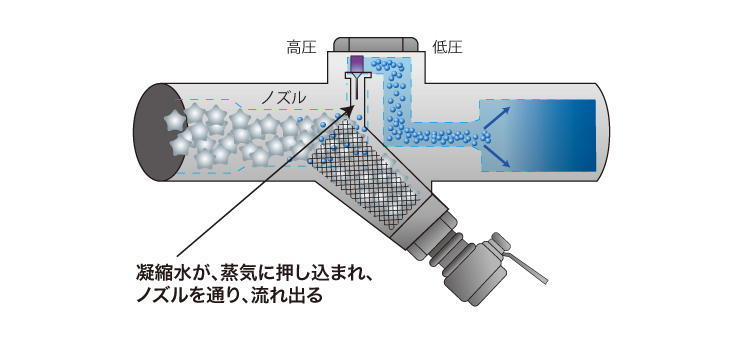 スチームトラップの大きな役目は、機器の性能を発揮し維持する為、内部で生じた凝縮水を